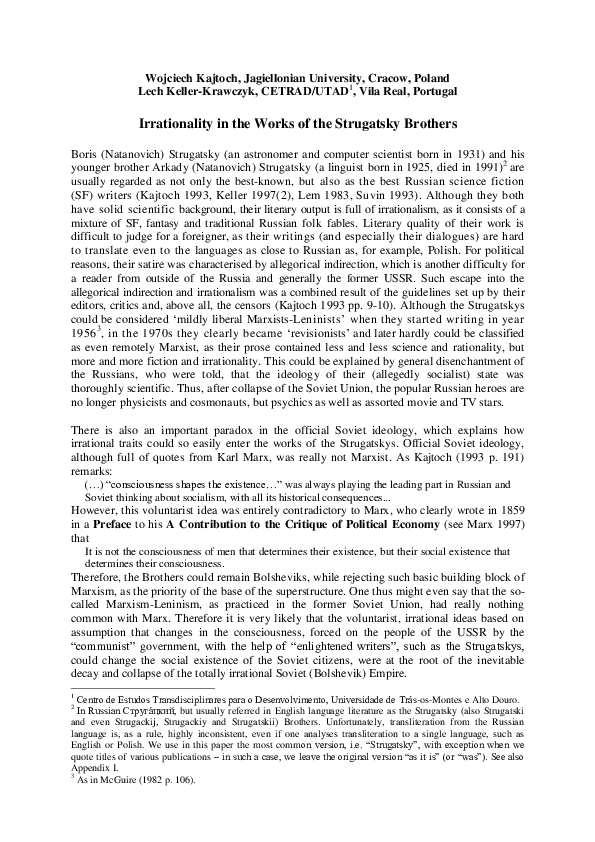 Pdf Irrationality In The Works Of The Strugatski Brothers Lech Keller And Wojciech Kajtoch Academia Edu